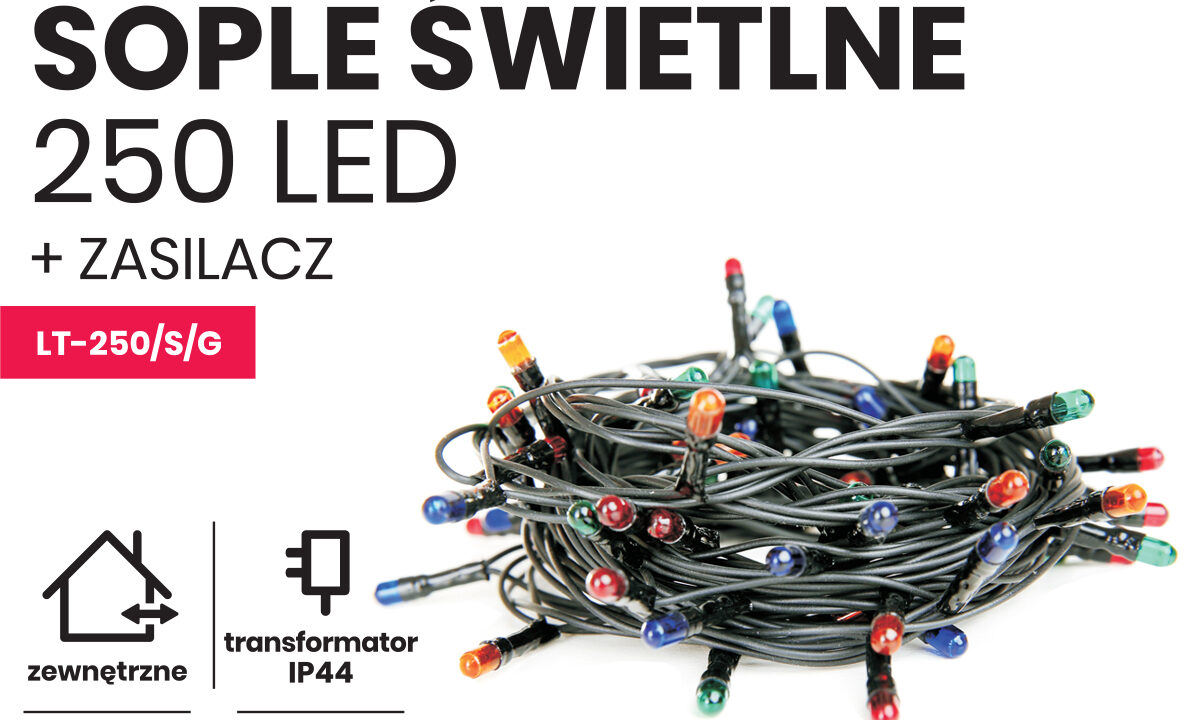 Sople led oświetlenie świąteczne 10m zewnętrzne 250 led z gniazdem – Programator 8 funkcji – Multikolor | NR 8637