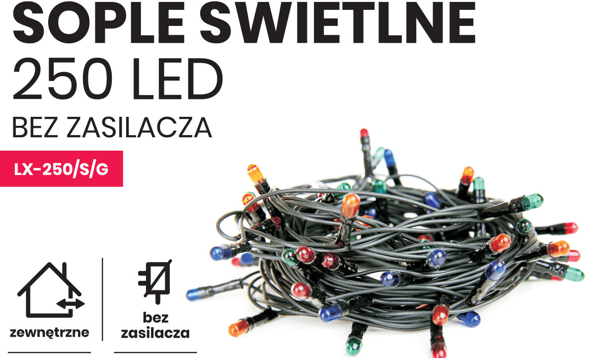 Sople led oświetlenie świąteczne 10m zewnętrzne 250 LED z gniazdem – Programator 8 funkcji – Multikolor | NR 8757