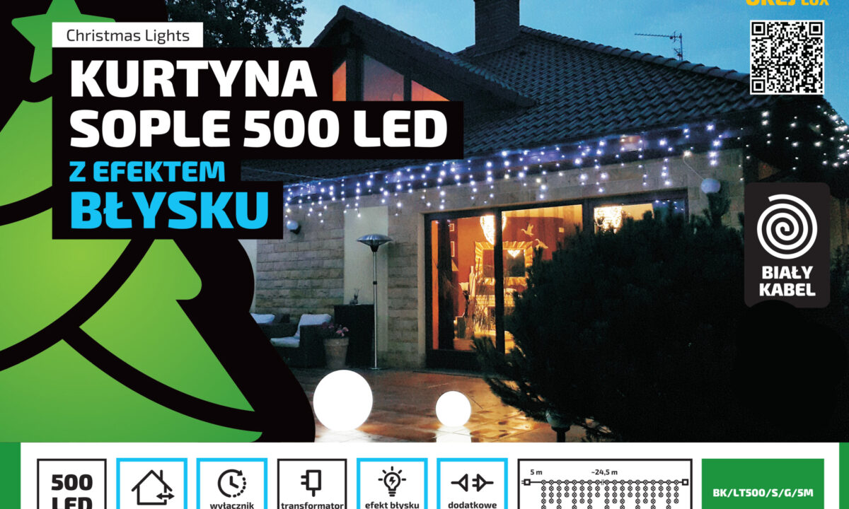Sople led oświetlenie świąteczne 24,5 metra zewnętrzne 500 LED Światło stałe – Zimny Biały | NR 6446